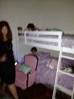 Brookie put on classical music after Sadie read a bed-time story. Nate went to sleep -- remarkably -- with a cat at the foot of his bad and a pink chair protecting him from falling off.